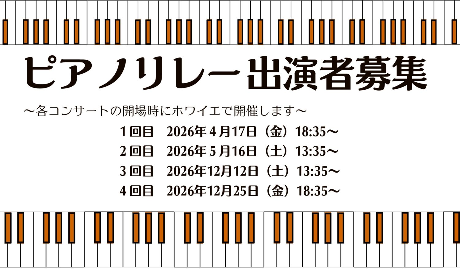 | チケット料金 | ピアノリレー参加費無料 |