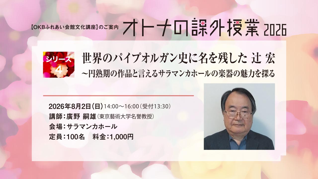 パイプオルガンはキリスト教と共に日本にやってきた。だが禁制によりその歴史は明治時代までとだえた。解禁とともにまず普及したのは足踏み式リードオルガンだった。パイプオルガンの本格的な設置が進んだのは、今からほぼ半世紀前のこと。公共音楽ホール建設と共にパイプオルガンの設置も進んだ。この流れの中で、東京藝大オルガン科卒業後オルガン制作に取り組み、アメリカ、オランダでの修業を経て、日本人として初めてパイプオルガンを完成したのが辻 宏だった。辻は、世界のパイプオルガン史に名を残した最初の日本人。その円熟期に制作されたのが、サラマンカホールの楽器である。