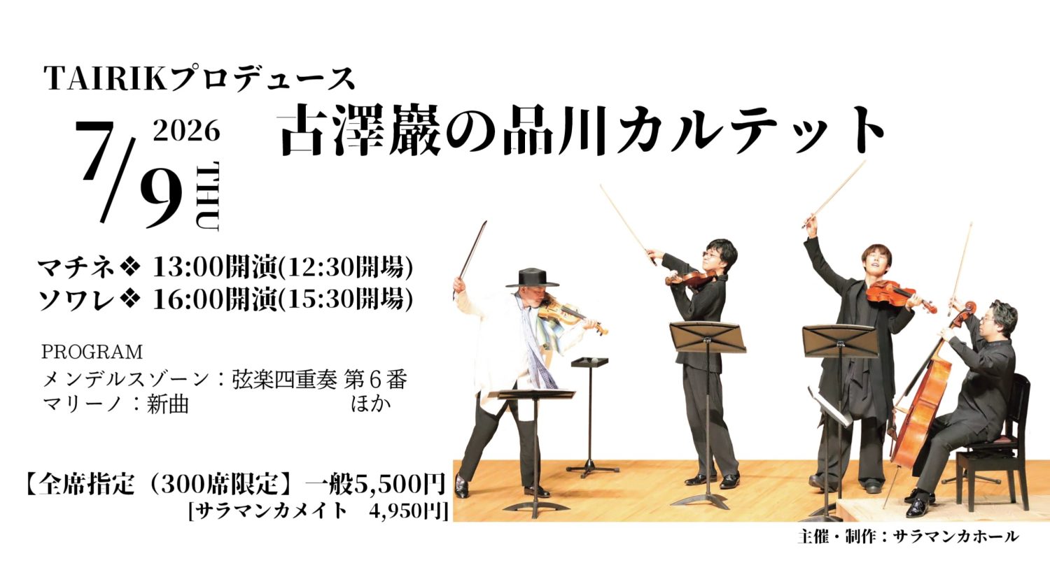 | チケット料金 | 全席指定 (300席限定)一般 5,500円 [サラマンカメイト 4,950円] |
