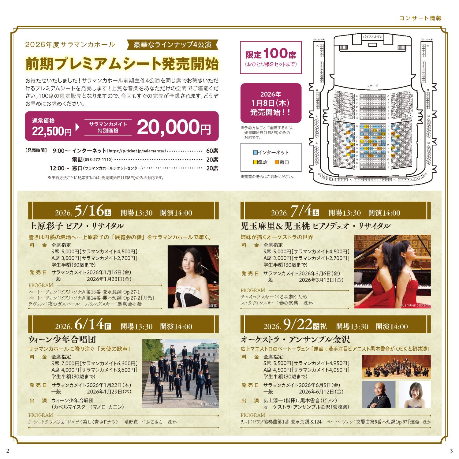 【サラマンカメイト限定】2026年度サラマンカホール前期プレミアムシート